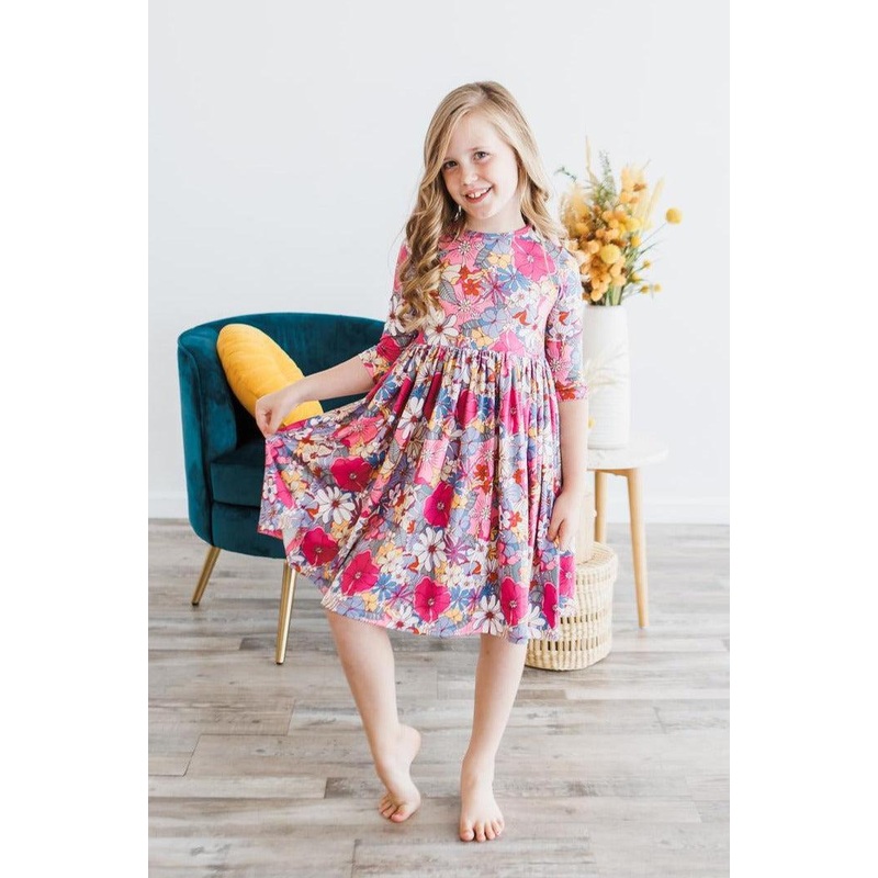 The perfect dress for school, special occasions, and everyday play!Scoop back and ballet neckline make getting dressed a breeze. Full skirt makes twirling extra fun.Super soft fabric stays bright wash after wash.Mix and Match our What's Up Buttercup print