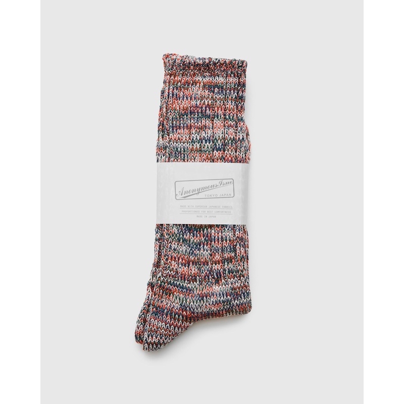 • The Melange socks from AnonymousIsm are soft full-length made from multi-colored melange yarn. The socks are woven using the brand’s signature slub weave, which adds texture and pliability. Each pair of AnonymousIsm socks are expertly crafted by their team in Tokyo, Japan.