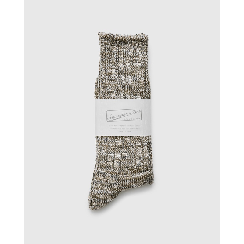 DetailsSizingBrand InfoThe Melange socks from AnonymousIsm are soft full-length made from multi-colored melange yarn. The socks are woven using the brand's signature slub weave, which adds texture and pliability. Each pair of AnonymousIsm socks are expertl