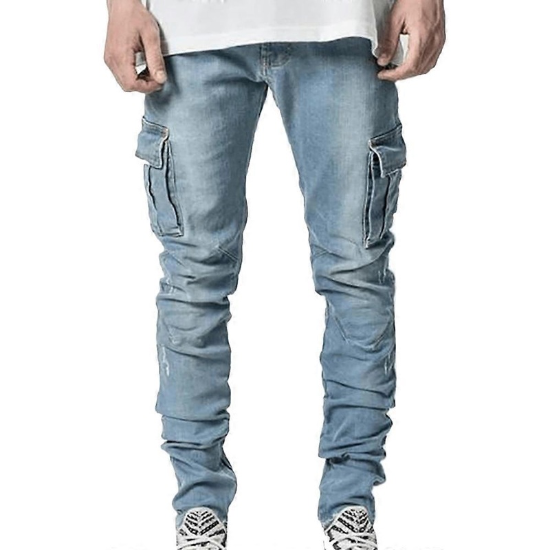 Description Men Cargo Combat Denim Pants Skinny Jeans Casual Slim Fit Trousers Material: Denim Package include:1 x Men's Jeans Note: 1. Due to the different monitor and light effect, the actual color of the item might be slightly different from the color s