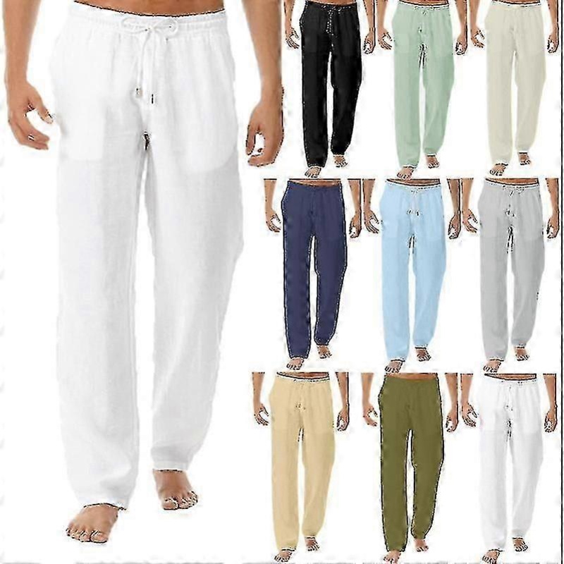Description Men's Linen Look Loose Pants Elastic Waist Casual Waist Yoga PantsMaterial: PolyesterPacking list: 1 pair of men's trousersNote: 2-3 cm difference due to manual measurement please forgive the 2-3 cm difference.Due to different lighting, the act