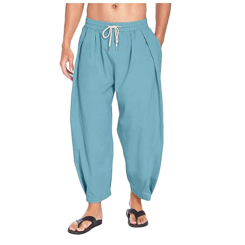 Men’s Cotton Linen Harem Pants Drawstring Casual Cropped Trousers Lightweight Loose Beach Yoga Pants with Pockets A3 | Fruugo SG