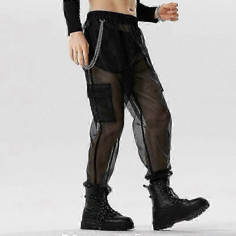 Description Package Included: 1 * Pants Size: S, M, L, XL, 2XL, 3XL, 4XL, 5XL Fabric Material: 100% Polyester Color: Black, Green, Purple, Red Suitable Type: Fit Style: Basics Occasion: Leisure Pattern: Mesh Thickness: Moderate Men's mesh long pants. Label