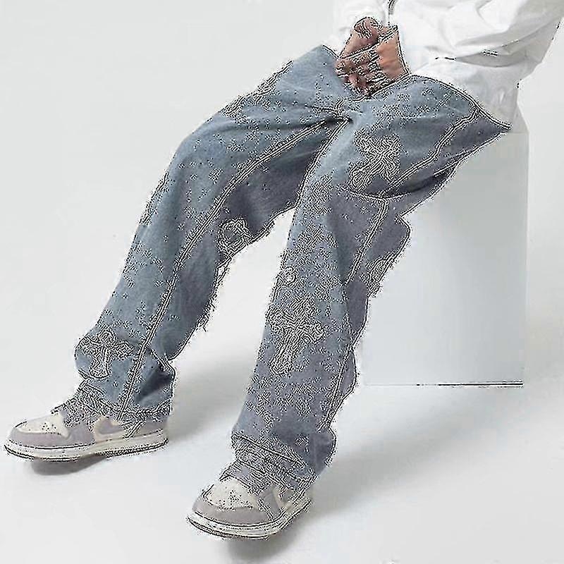 Origin : CN(Origin)Closure Type : Zipper FlyApplicable Season : Four SeasonsApplicable Scene : DailyStyle : chicWaist Type : MIDDecoration : EmbroideryPattern Type : SolidMaterial : DenimModel Number : 3047Gender : MENJeans Style : StraightWash : LightFit Type : StraightItem Type : JEANSThickness : MidweightLength : Full LengthFabric Type : PlaidDrop shopping : SupportSizewaistline(cm)Pants length(cm)Hips(cm)S7699100M80101104L84103108XL881051122XL921071163XL96109120Zipper closureSolid High Waist Wide Leg JeansSoft and comfortable fabric, no stretchFeatures: Button, Pocket, Zipper, Denim, High Waist, Wide Leg, FashionableCasual Pants, Great to Pair With T Shirt, Tops. Suit for Casual Wear, Daily WearSize Recommendation: Please refer to size chart which we provide in our photos