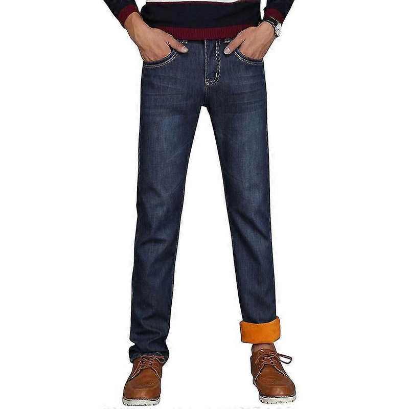 Men Winter Thermal Jeans Fleeced Lined Denim Long Pants Casual Warm Trousers for Office Travel | Fruugo SG