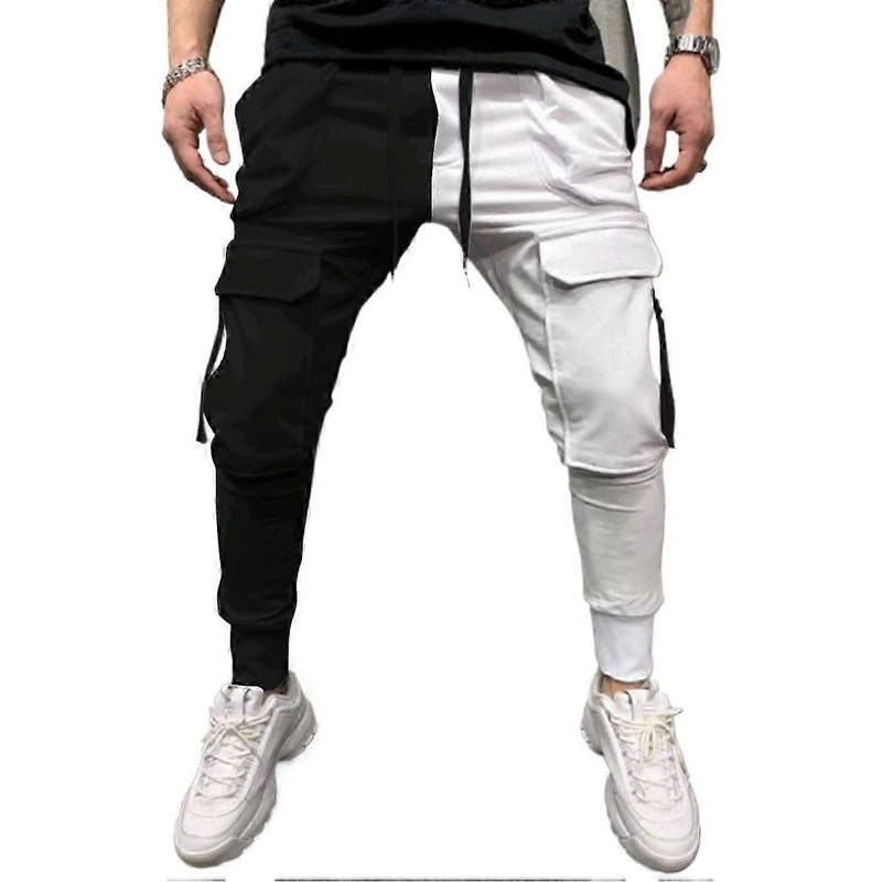 Description These men's casual pants are a perfect blend of and functionality, ideal for both spring and autumn wear. Featuring a striking patchwork design with bold color combinations like red and blue, black and white, or red and yellow, these pants make