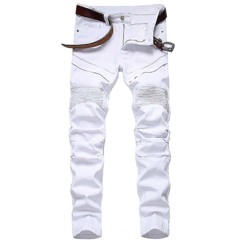 Size Chart(cm) 29: Waist 74cm-Length 103cm-Hip 100cm 30: Waist 76.5cm-Length 104cm-Hip 102cm 31: Waist 79cm-Length 105cm-Hip 104cm 32: Waist 81.5cm-Length 106cm-Hip 106cm 33: Waist 84cm-Length 107cm-Hip 108cm 34: Waist 86.5cm-Length 108cm-Hip 110cm 36: Waist 91.5cm-Length 109cm-Hip 114cm 38: Waist 96.5cm-Length 110m-Hip 118cm 40: Waist 101.5cm-Length 111cm-Hip 122cm 42: Waist 106.5cm-Length 112cm-Hip 126cm Material: 82% cotton and 18% polyester fiber Popular elements: zipper, folds. Suitable for seasons: four seasons Washing method: Machine wash cold, turn the jeans inside out and wash seperately with like colors. Do not bleach, gentle cycle, flat or line dry only. Lowiron if needed Pants version: Conventional Features: 1. Pocket Features: Two pockets on both sides (both real) and two back pockets (both real). 2. Fashionable and versatile, you can wear it on any casual occasion. You can wear him to go to parties, bars, clubs. 3. The material is made of high-quality fabrics. You dont have to worry about shrinking or fading. At the same time, the pants are breathable and not easy to wrinkle. Due to the different shooting equipment, there will be some errors between the actual object and the picture. Please refer to the size chart according to your own data to choose the right trousers.