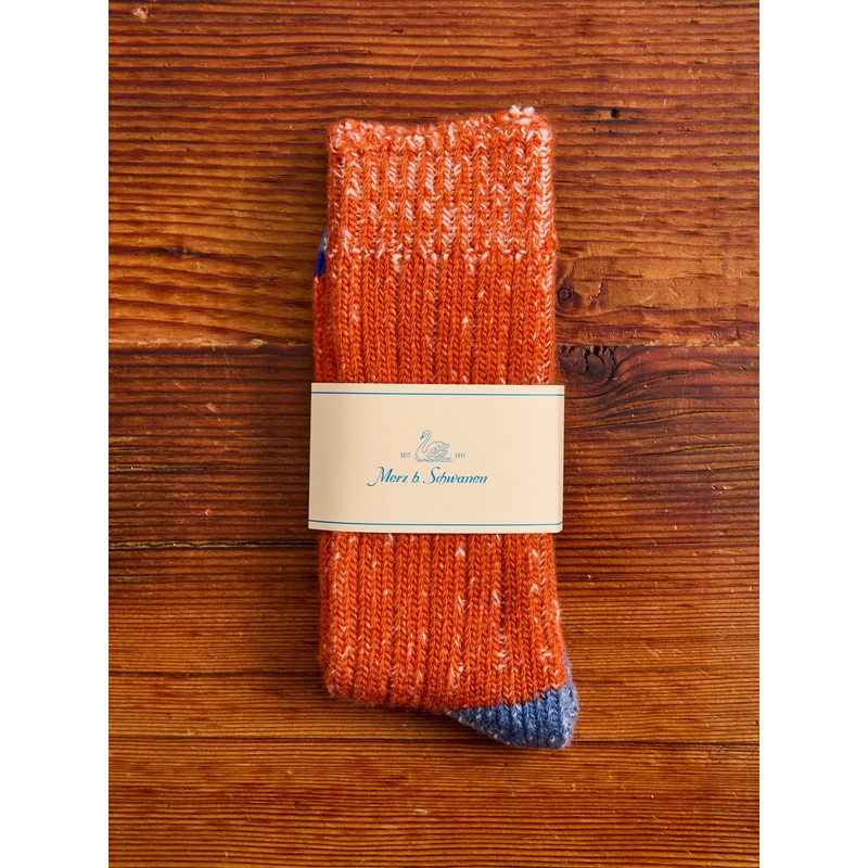 • Made from certified mulesing-free Merino wool, these socks from Merz b. Schanen feature a melange knit design inspired by vintage styles. Made at a standard boot-crew length, these socks are knit with a wide rib melange pattern and contrast heel panels.