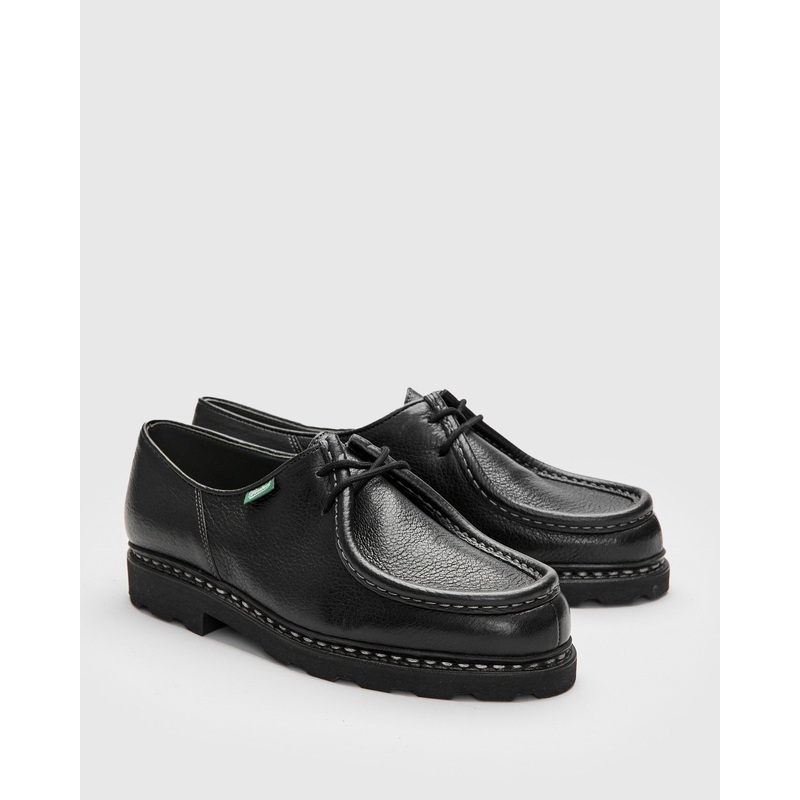DetailsSizingBrand InfoThe Michael is a Paraboot's signature moc-toe derby silhouette, crafted in France from a supple deerskin leather with a textured grain. This enduring design is built with a natural leather footbed, Norwegian welted construction, and