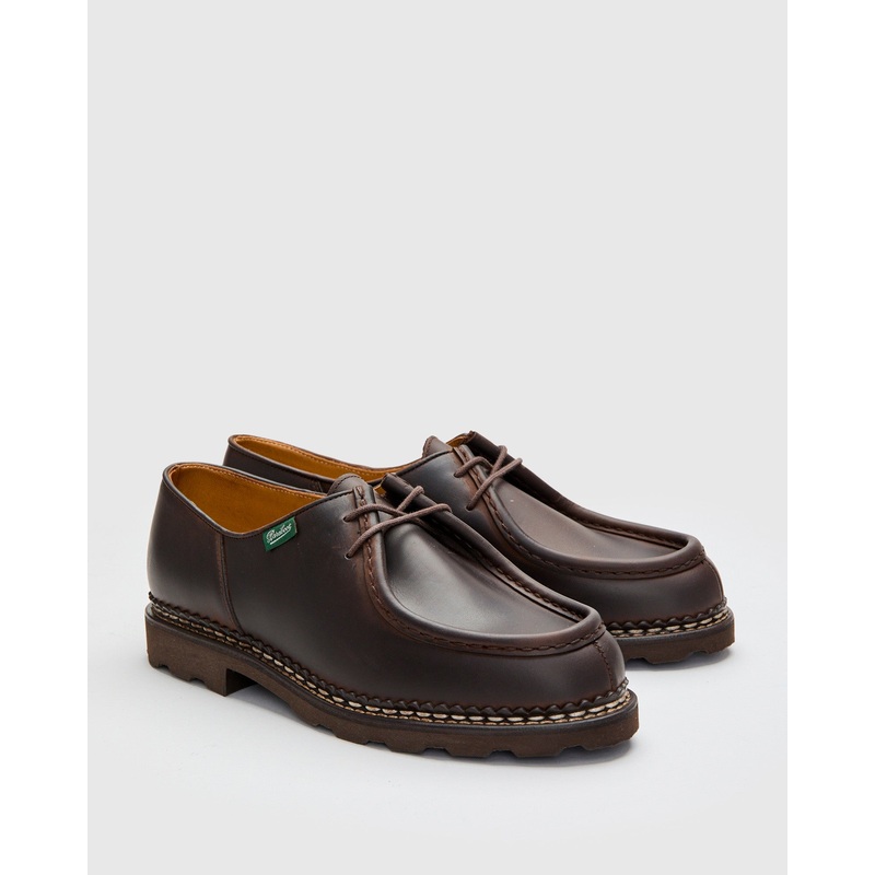 DetailsSizingBrand InfoOriginally introduced in 1945, the Michael is Paraboot's signature moc-toe derby silhouette. Crafted in France, this iteration features a heavily oiled nubuck leather for a weather-resistant finish with a slight pull-up effect. This