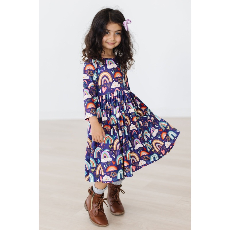 Midnight Rainbow 3/4 Sleeve Pocket Twirl Dress