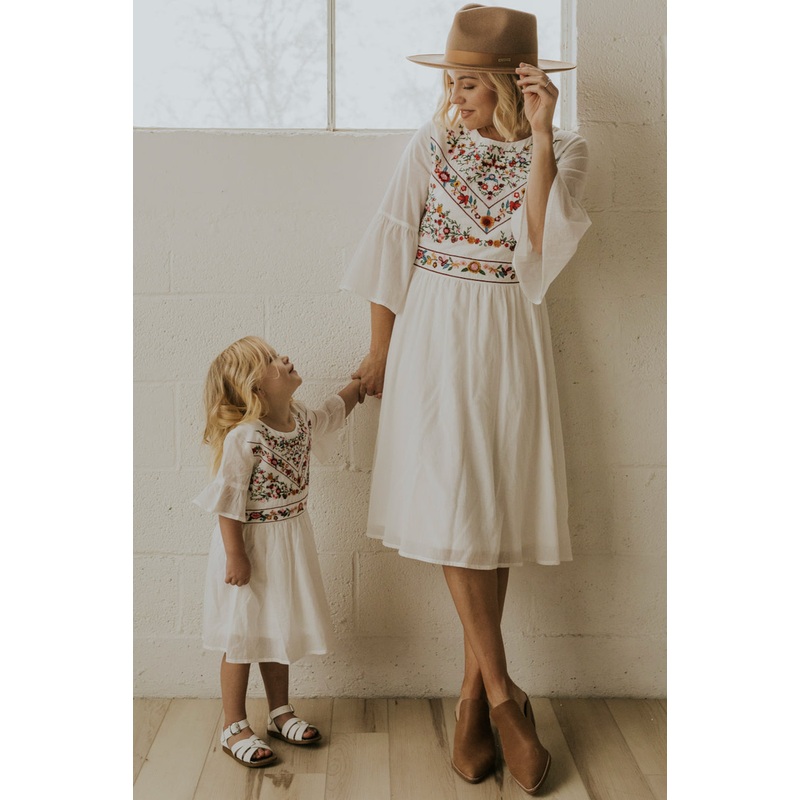 Prepare to fall madly in love withthe Mini DeMille Embroidery Dress! With its elegant embroidery, this dress stands out from the rest. Featuring a loose, flowy fit and a zipper back closure, it is perfect for any occasion. Pair with sandals or sneakers, a cute headband, and your little one is ready for any venture!