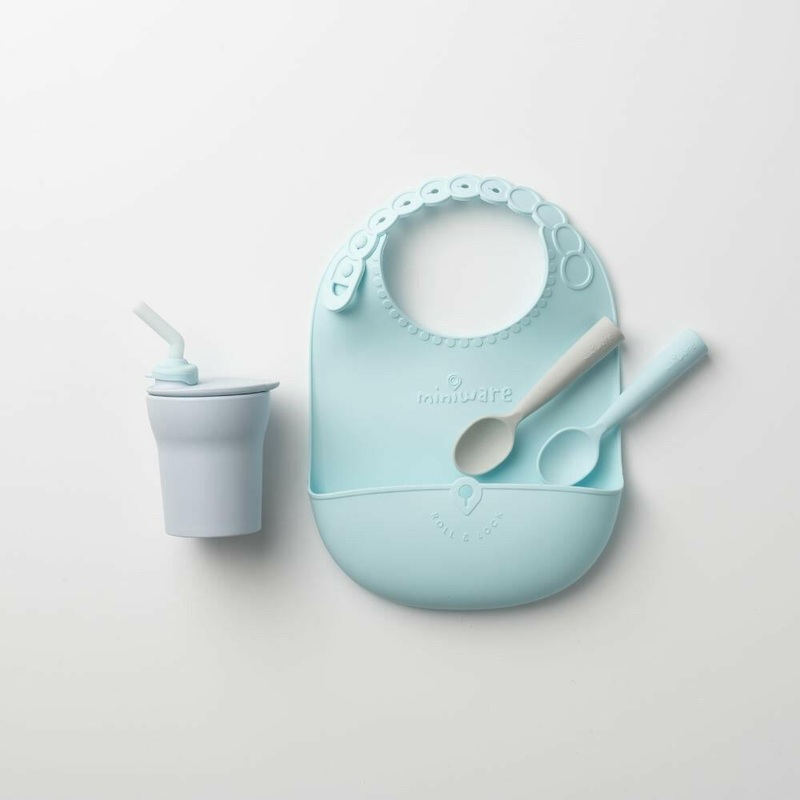 This combo brings together three of Miniwares most popular items into a perfect intro bundle. 1-2-3 Sip! and the Training spoons are designed to support little ones as they develop early feeding and drinking skills, and will grow along with the child as they advance. Meanwhile the Roll & Lock is a parent’s favorite, cute and with an oversized pouch that rolls into a compact travel shape, this bib keeps messiness to a minimum.