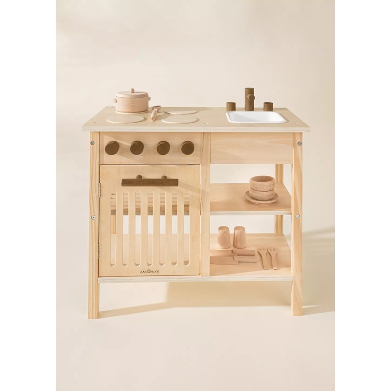 Kid's Wooden Play Kitchen - Pretend Play ToyChildren do not play to learn, but it is by playing that they learn the most!Imitation is an essential means of motor and cognitive development in children! This is why the Mini Wooden Play Kitchen is an exceptio