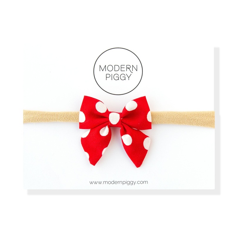 A sweet and simple sailor-type bow made out of a high-quality, cotton fabric.Each bow measures approximately 2.25" x 2 and is handmade with love.Two different style options:1) Alligator clip - Best option for your older babes. The clip can easily be rotate