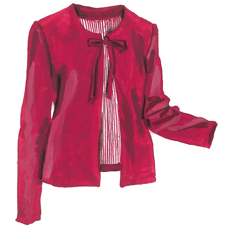 Miss Greenes Suede Jacket (No. 5944). I wouldnt call this urban prairie chic, but some rather heady publications might. Luxurious goat suede fully lined in a white-with-rose pinstripe.