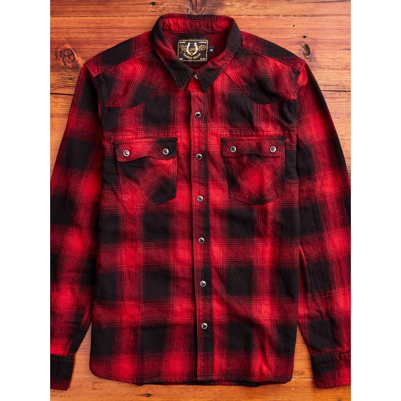 DetailsSizingBrand InfoFreenote's Modern Western is a modifiedsawtooth button down designed with rounded, smoothed out paneling. Sewnusing a7ozyarn-dyed plaid twillsourced from Japan,the shirt has anice mid-weightfeel andsoft finish.Detailed with classic w