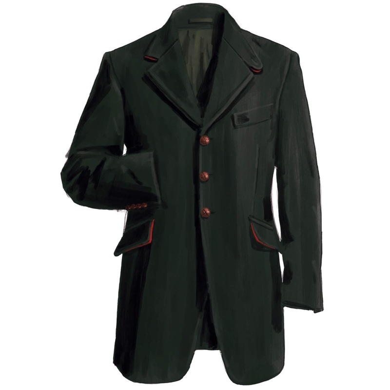 Moleskin Squires Blazer (No. 5844). 100% Italian cotton moleskin (510-gram) from legendary Duca Visconti. Front-waist darts for a tailored fit. Welt chest pocket and angled besom pockets at hip. Three interior pockets. Eye-catching red felt under collar and pocket flaps. Fully lined in moss green dobby twill. Four fully functional leather-woven shank buttons at each sleeve. Three down center front, two at back waist. Made in Portugal.