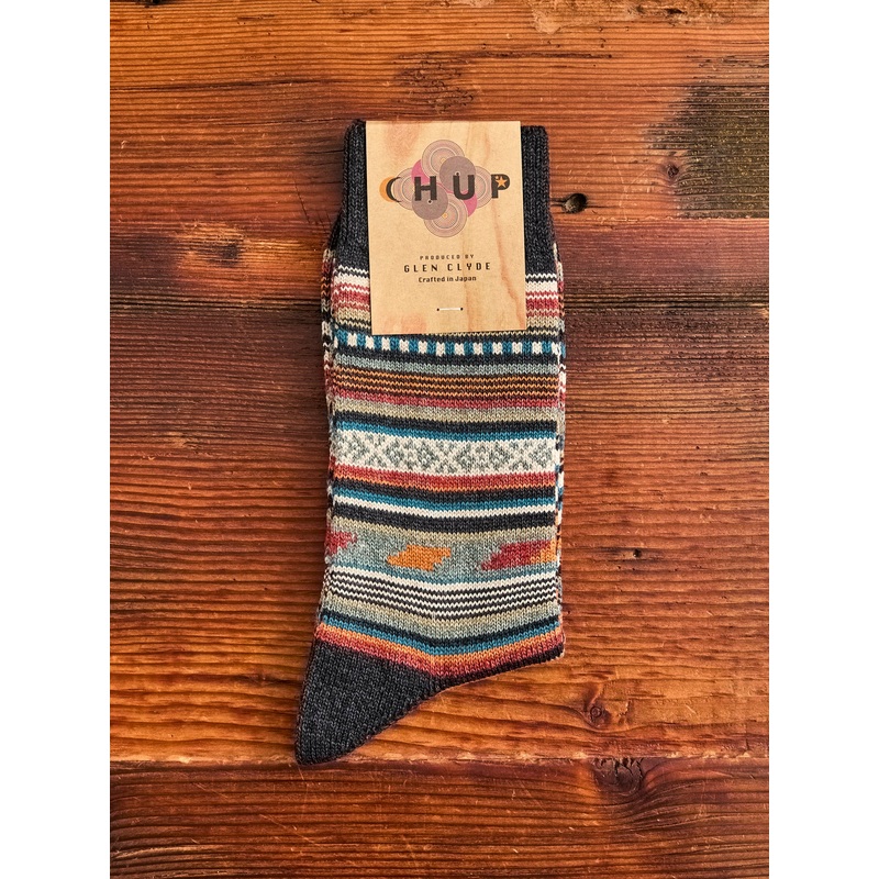 • TheMonument Valley socks from CHUP are soft full-length socks which take their inspiration from the American southwest. Jacquard woven using a blend of heavyweight multi-colored yarn. All socks from CHUP are handcrafted in Japan as part of Glen-Clyde Inc.