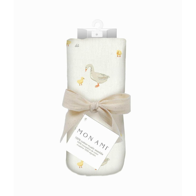 This swaddle blanket is perfect for any little goose. Steal the spotlight at your next baby shower with Mon Ami’s Mother Goose-themed baby blanket. Generously sized and crafted of premium cotton muslin, this luxuriously soft swaddle blanket will keep baby snug and happy. Our gosling-covered baby blanket can also be used as a sun shield over a stroller or car seat, as a privacy throw for nursing or as a plush playmat for tummy time.