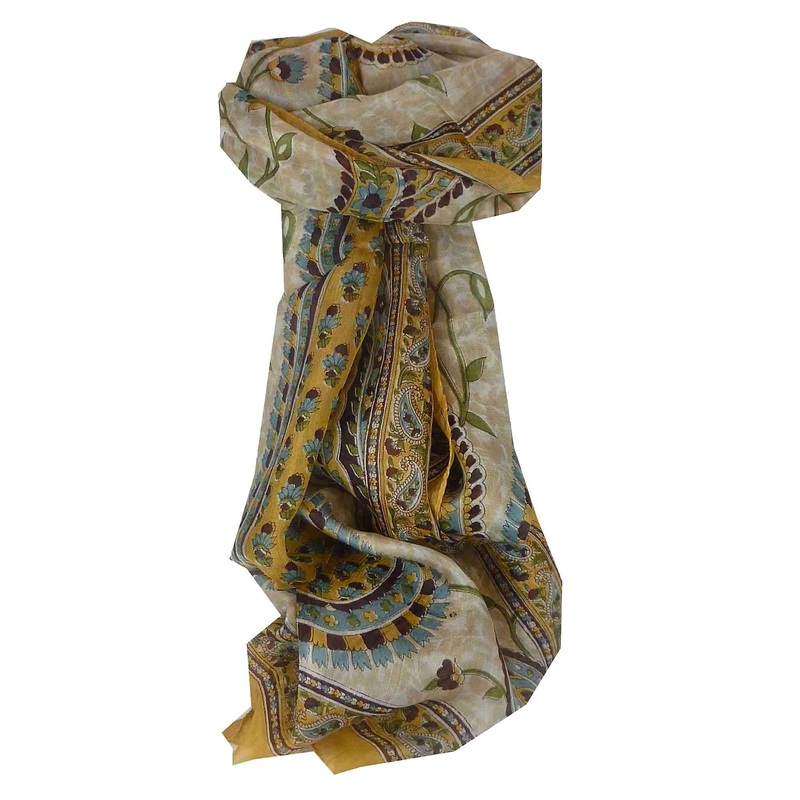 Our Traditional Range brings you a fine quality silk scarf representing all that is best in modern Indian textile design and at a very affordable price. This absolutely charming 100% silk scarf typically measures 168 cm x 50 cm. Each scarf has a luxurious feel. Made from very finely spun cultivated mulberry silk the finish is lighter, softer, rounder, and smoother than raw silk harvested from the wild. Soft and warm to wear, its authentic style is unusual and stunning. This versatile fashion accessory will complement all formal or casual wear.
