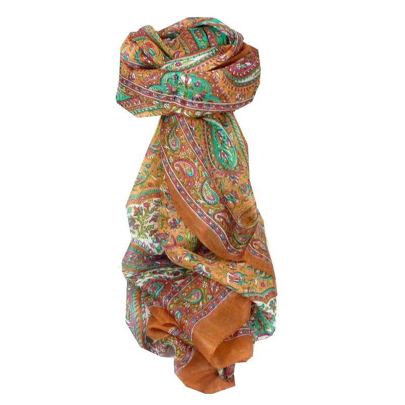 Our Traditional Range brings you a fine quality silk scarf representing all that is best in modern Indian textile design and at a very affordable price. This absolutely charming 100% silk scarf typically measures 168 cm x 50 cm. Each scarf has a luxurious feel. Made from very finely spun cultivated mulberry silk the finish is lighter, softer, rounder, and smoother than raw silk harvested from the wild. Soft and warm to wear, its authentic style is unusual and stunning. This versatile fashion accessory will complement all formal or casual wear.