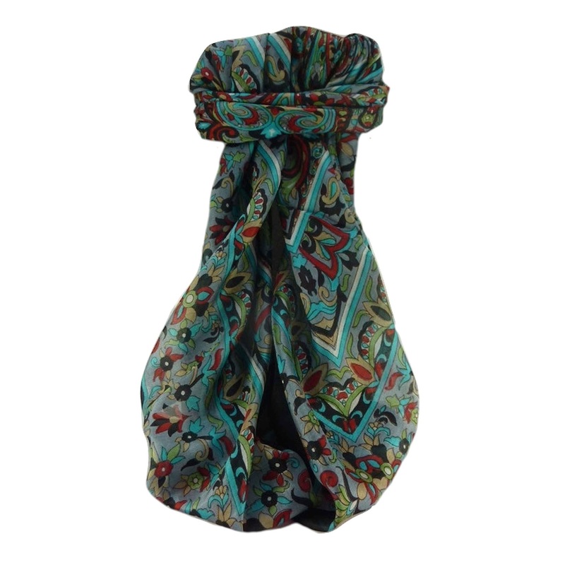 Our Traditional Range brings you a fine quality silk scarf representing all that is best in modern Indian textile design and at a very affordable price. This absolutely charming 100% silk scarf typically measures 100 cm x 100 cm. Each scarf has a luxurious feel. Made from very finely spun cultivated mulberry silk the finish is lighter, softer, rounder, and smoother than raw silk harvested from the wild. Soft and warm to wear, its authentic style is unusual and stunning. This versatile fashion accessory will complement all formal or casual wear.
