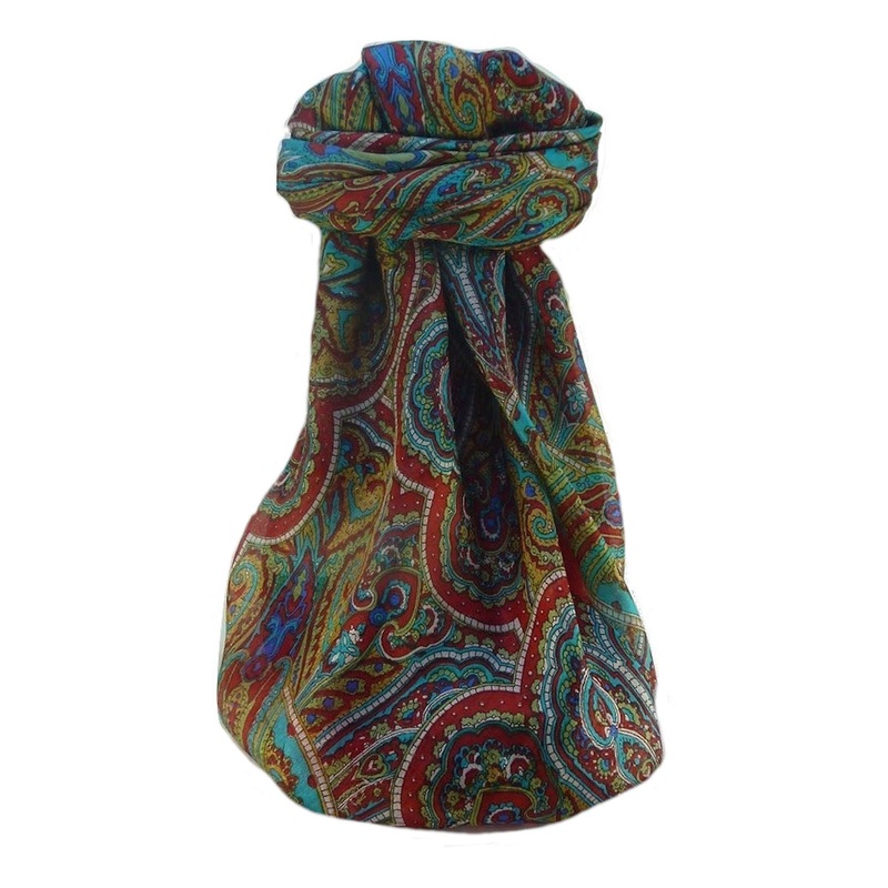 Our Traditional Range brings you a fine quality silk scarf representing all that is best in modern Indian textile design and at a very affordable price. This absolutely charming 100% silk scarf typically measures 100 cm x 100 cm. Each scarf has a luxurious feel. Made from very finely spun cultivated mulberry silk the finish is lighter, softer, rounder, and smoother than raw silk harvested from the wild. Soft and warm to wear, its authentic style is unusual and stunning. This versatile fashion accessory will complement all formal or casual wear.
