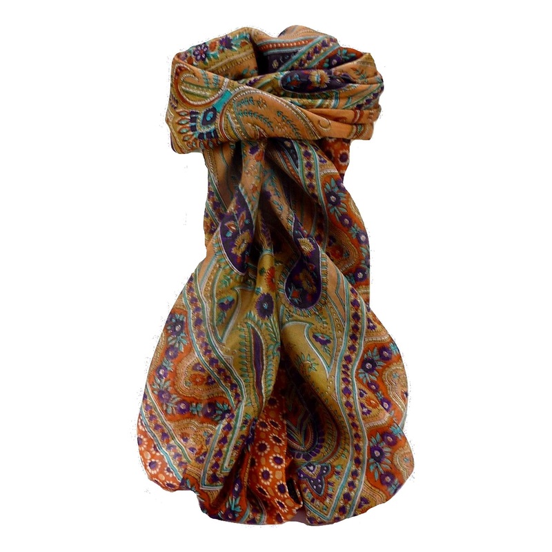 Our Traditional Range brings you a fine quality silk scarf representing all that is best in modern Indian textile design and at a very affordable price. This absolutely charming 100% silk scarf typically measures 100 cm x 100 cm. Each scarf has a luxurious feel. Made from very finely spun cultivated mulberry silk the finish is lighter, softer, rounder, and smoother than raw silk harvested from the wild. Soft and warm to wear, its authentic style is unusual and stunning. This versatile fashion accessory will complement all formal or casual wear.