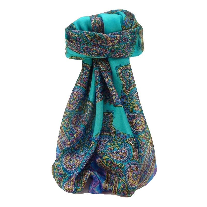 Mulberry Silk Traditional Square Scarf Obi Aqua by Pashmina & Silk | Fruugo SG