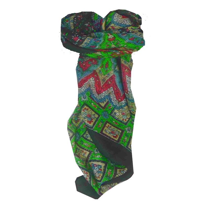 Our Traditional Range brings you a fine quality silk scarf representing all that is best in modern Indian textile design and at a very affordable price. This absolutely charming 100% silk scarf typically measures 100 cm x 100 cm. Each scarf has a luxurious feel. Made from very finely spun cultivated mulberry silk the finish is lighter, softer, rounder, and smoother than raw silk harvested from the wild. Soft and warm to wear, its authentic style is unusual and stunning. This versatile fashion accessory will complement all formal or casual wear.