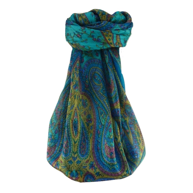 Mulberry Silk Traditional Square Scarf Takia Aqua by Pashmina & Silk | Fruugo SG