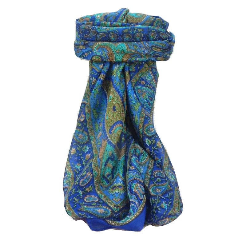 Mulberry Silk Traditional Square Scarf Zoi Blue by Pashmina & Silk | Fruugo SG