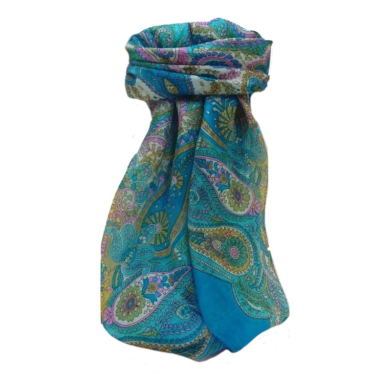 Mulberry Silk Traditional Square Scarf Zoya Aqua by Pashmina & Silk | Fruugo SG