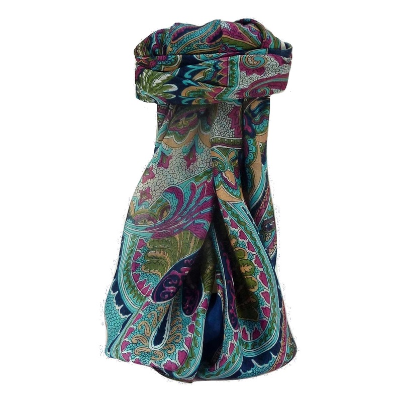 Our Traditional Range brings you a fine quality silk scarf representing all that is best in modern Indian textile design and at a very affordable price. This absolutely charming 100% silk scarf typically measures 100 cm x 100 cm. Each scarf has a luxurious feel. Made from very finely spun cultivated mulberry silk the finish is lighter, softer, rounder, and smoother than raw silk harvested from the wild. Soft and warm to wear, its authentic style is unusual and stunning. This versatile fashion accessory will complement all formal or casual wear.
