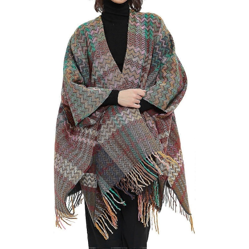 Description Brighten up your wardrobe with our Multicolor Chevron Pattern Shawl for Women. This shawl showcases a dynamic chevron pattern in a mix of vibrant colors, making it a standout piece for any outfit. The open front design offers easy wear and vers