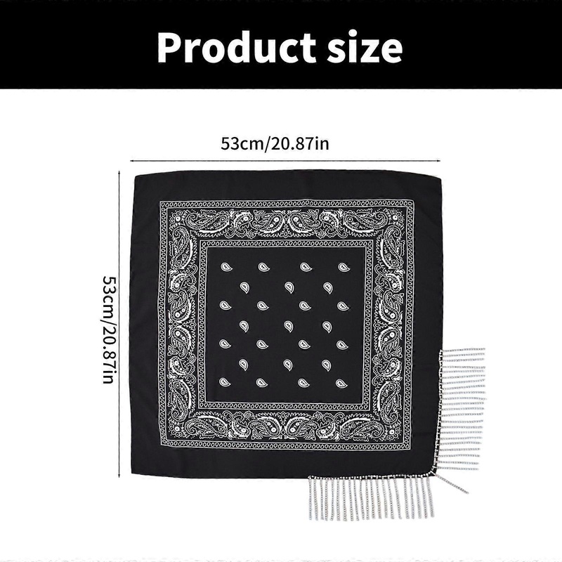 Description Features: 53x53cm scarf multifunction headscarf with tassels, small cashew scarf, large size square neckerchief. Multifunctional designing, can use as both a headscarf or a scarf, combining fashion and practicality, adds touches of fashion char