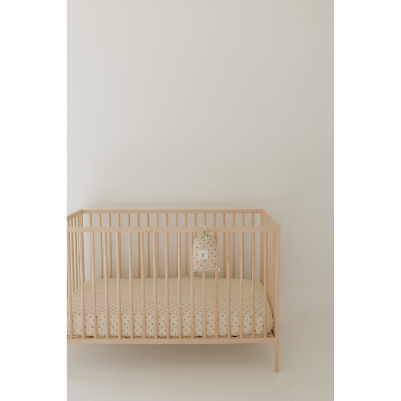 Bring elegance to your baby's nursery with our flora crib sheet. Made with a cream background and intricate gold grid pattern, this sheet adds a touch of luxury to your little one's bedding. Soft and cozy, it's perfect for a good night's sleep.100% muslin