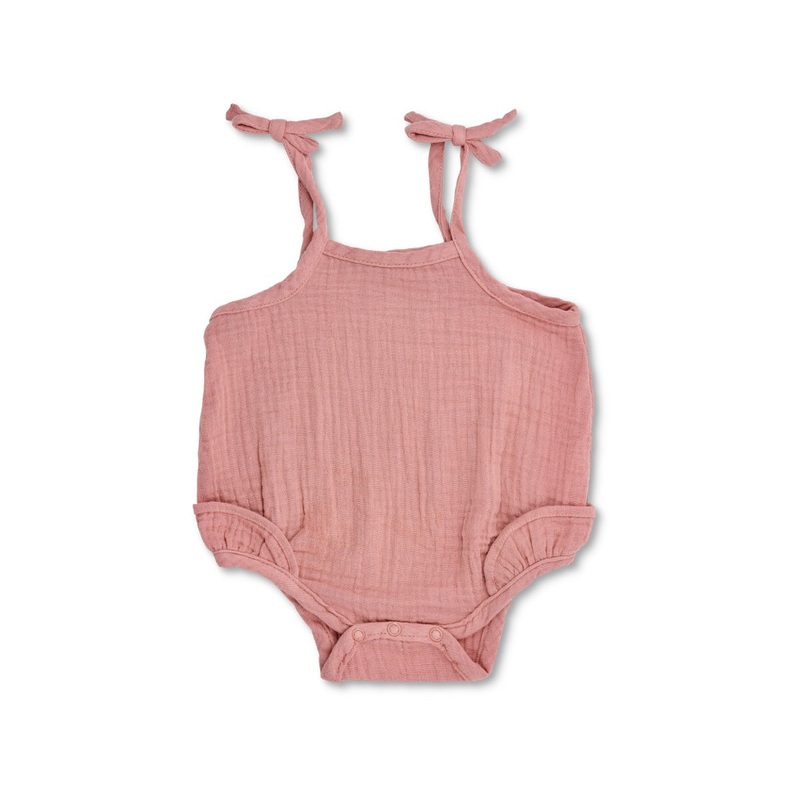 Muslin Ruffle Romper With Ties – Terra Cotta