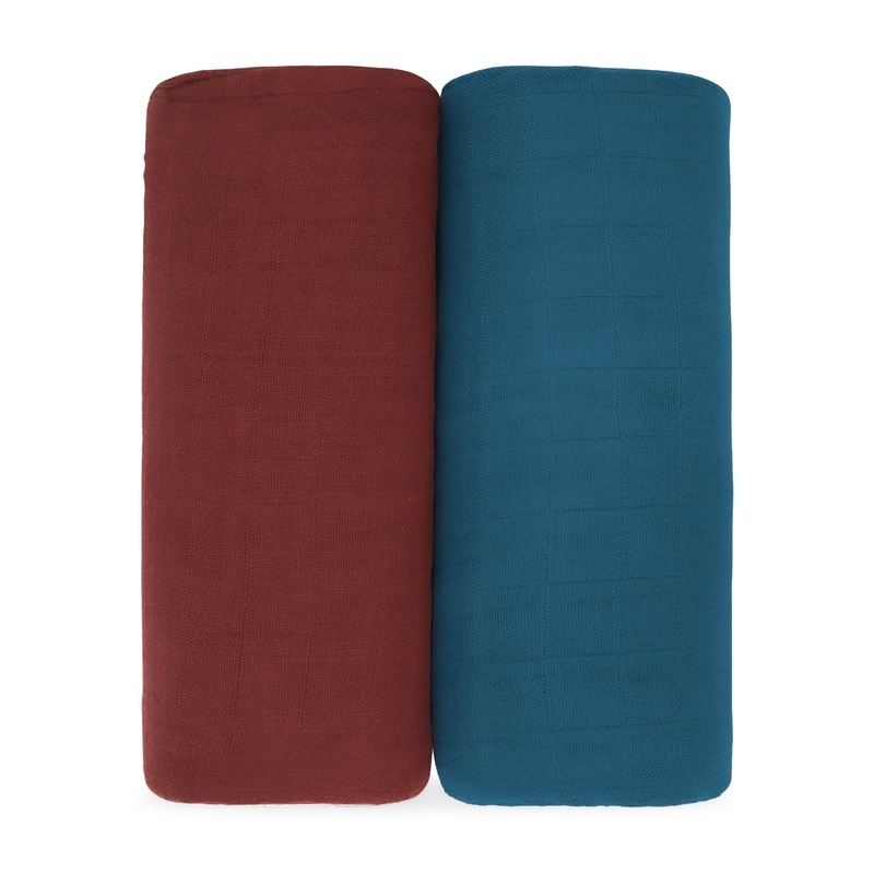 Muslin Swaddle Blanket, 2 Pack by Comfy Cubs – Wine & Neptune