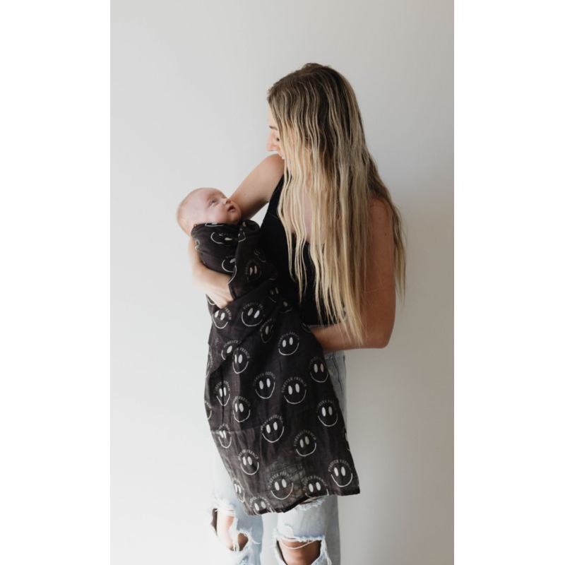 Featuring a Forever French baby smile pattern, this premium swaddle is made of lightweight, breathable muslin fabric to keep your little one warm and secure. Wrap baby up in this cozy swaddle for the perfect snugly snooze!