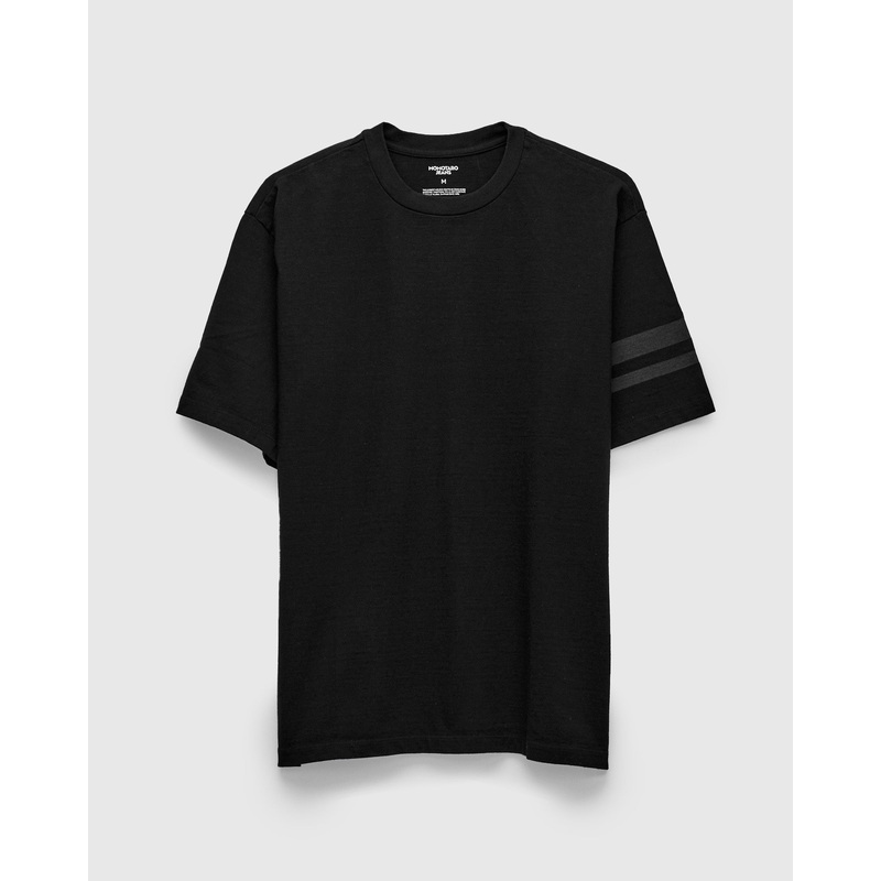 DetailsSizingBrand InfoMomotaro reintroduces their Going to Battle T-shirts in a newly developed heavyweight 8.5oz jersey woven using sturdy 100% Zimbabwe cotton. A brand classic, the tee is decorated with the signature "Going to Battle" stripes across the