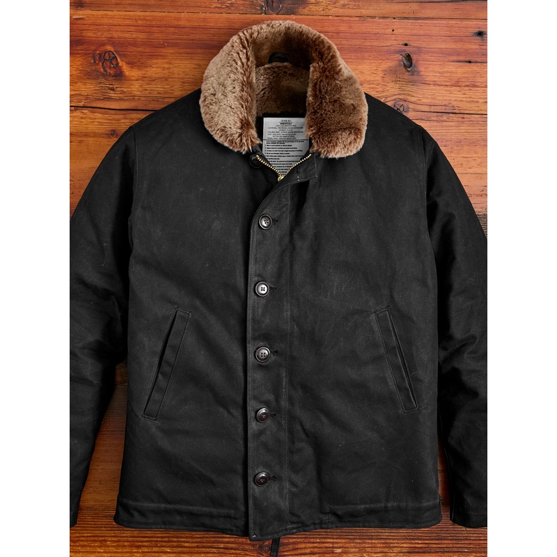 • The Dehen N-1 Deck Jacket is based on vintage naval issue jackets from WWII. Warmer and more substantial than anything in its class, the N-1 deck jacket is built from a 10.1oz waxed canvas shell and is fully lined with genuine luxurious mouton. More than 70 years later, the classic jacket maintains its place as a endlessly functional and stylish garment.