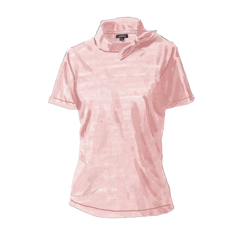 Neck Tie Knit Top (No. 6945) for everyday or special occasions. You might think of it as a really, really feminine T-shirt. Self-fabric neck tie. Flatlock seams. Small bust darts for figure-enhancing shaping. Timeless comfort in 100% cotton. Imported.