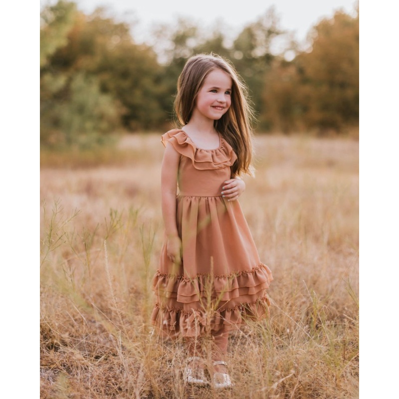 Celebrate the bond between mother and daughter with our fan favorite Nellie Ruffle Maxi Dress in rich Mocha! Perfectly designed for those cherished, twinning moments, this dress offers a blend of elegance, comfort, and a dash of playful sophistication.Key