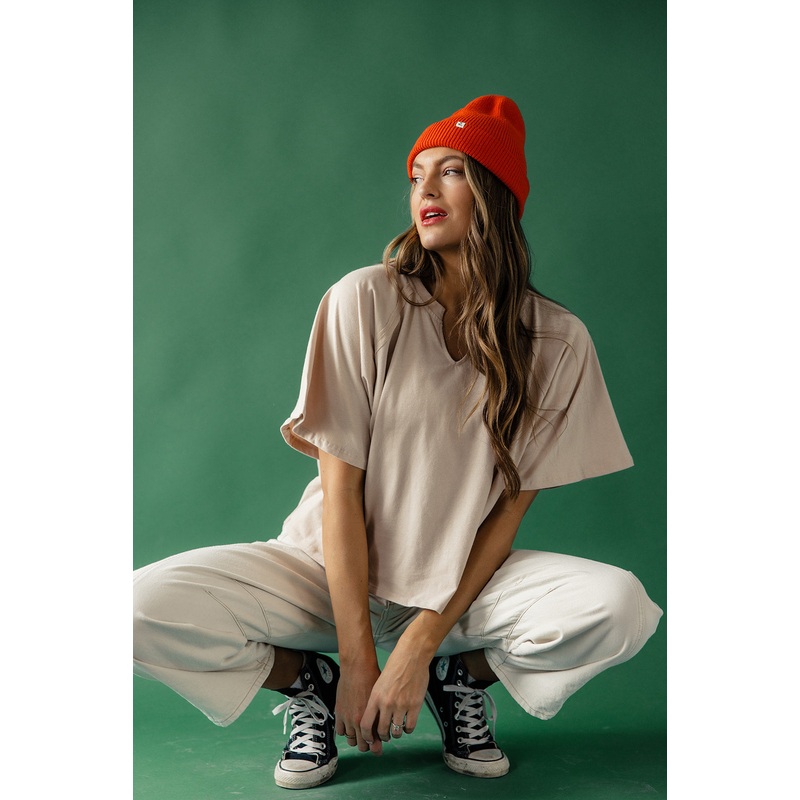 Introducing the New Sun Knit Top, tailored with a boxy fit and flutter sleeves for a modern twist. The v-neckline adds a touch of allure, while the versatile tan hue complements any look. Effortlessly elevate your style with this timeless piece, perfect fo
