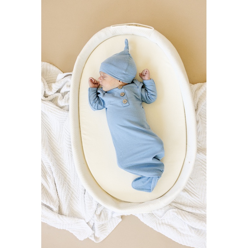 Wrap your little one in comfort and style with our Newborn Bamboo Gown & Hat Setdesigned to perfectly coordinate with our Labor & Delivery Gowns. Featuring soft bamboo fabric and a gentle stretch, this gown is not only cozy but functional with a button accent and a convenient tie-bottom for quick diaper changes. Choose from three timeless colors: