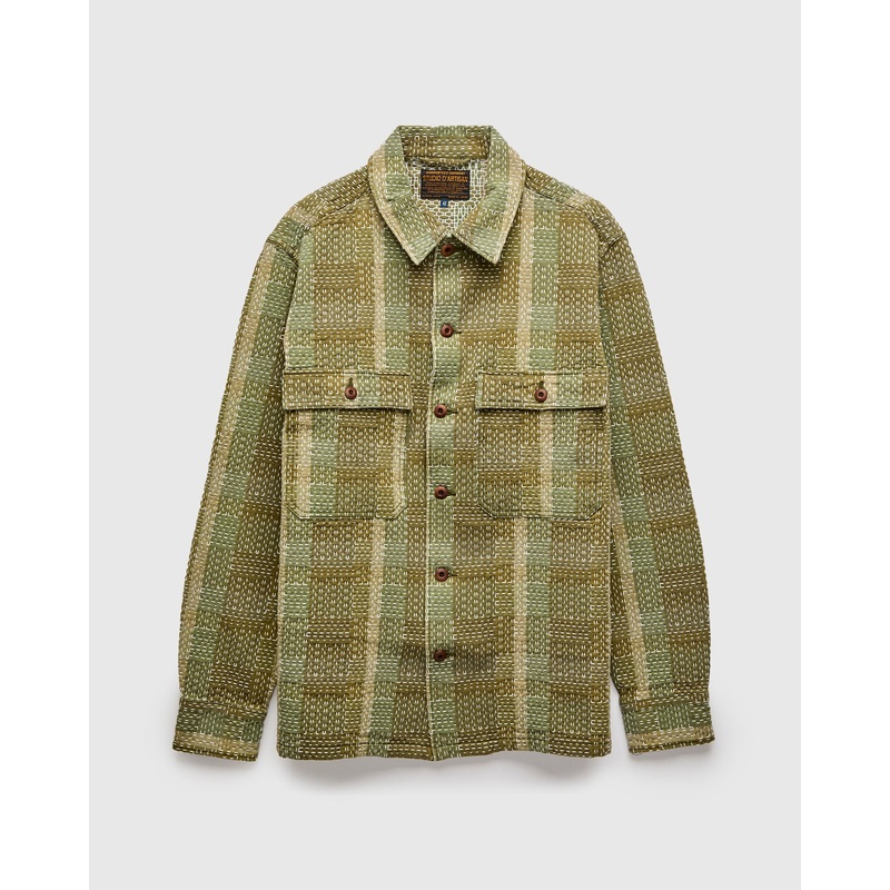 DetailsSizingBrand InfoThis button-up shirt from Studio Dartisan is made from a heavyweight Japanese sashiko jacquard fabric, inspired by traditional Japanese textiles. The custom "Noragi Sashiko" fabric features a richly textured patchwork-style design wi