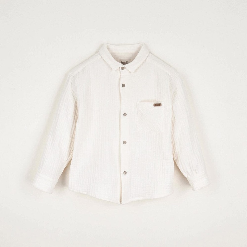 Collared shirt with pockets and yoke on the back. Wooden button front opening.100% Organic Cotton