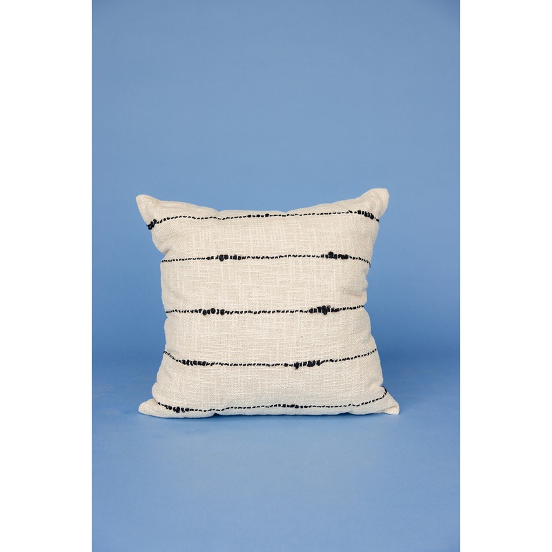 The Old Sould Woven Pillow is the perfect neutral piece! With black stripes and a cotton cover, this square pillow is the ideal addition to your home.